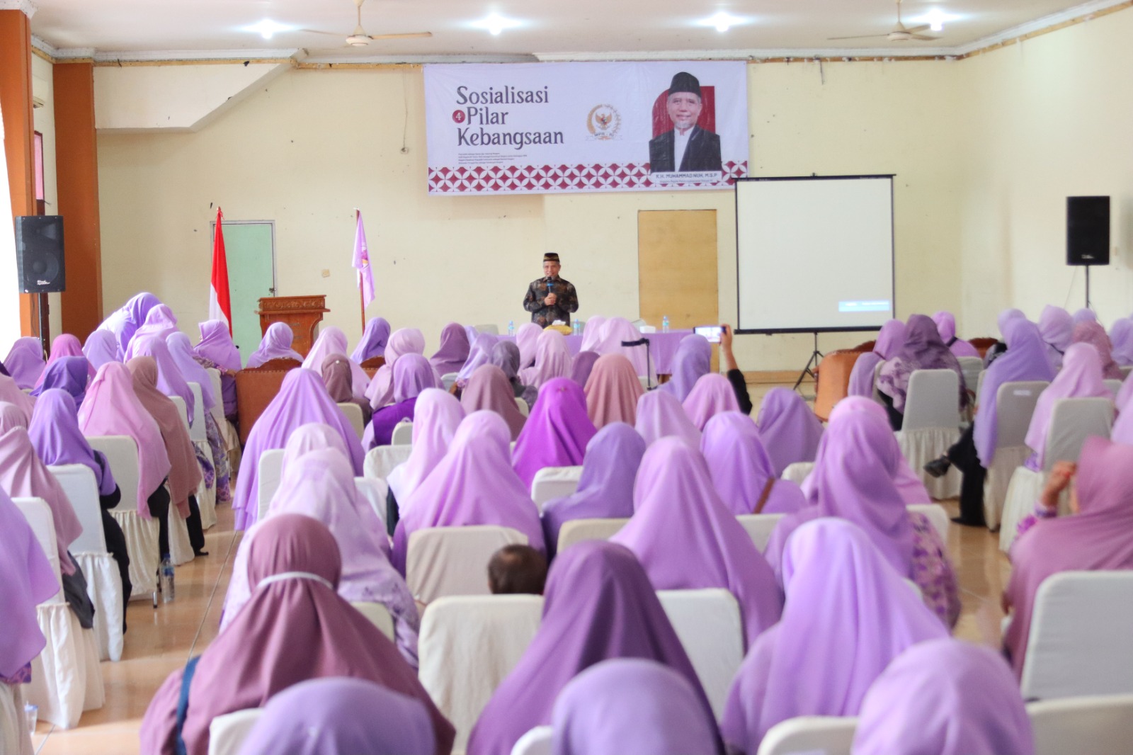 Medan- wartaindonesia.org – Anggota Majelis Permusyawaratan Rakyat Republik Indonesia (MPR RI), K.H. Muhammad Nuh, menggelar sosialisasi Empat Pilar Kebangsaan yang ditujukan kepada pengurus organisasi Salimah (Persaudaraan Muslimah) se-Kota Medan. Acara yang berlangsung di Aula Asrama Haji Medan pada Senin (9/2) ini dihadiri oleh ratusan kader muslimah dari berbagai kecamatan. (9 /2/ 2026)