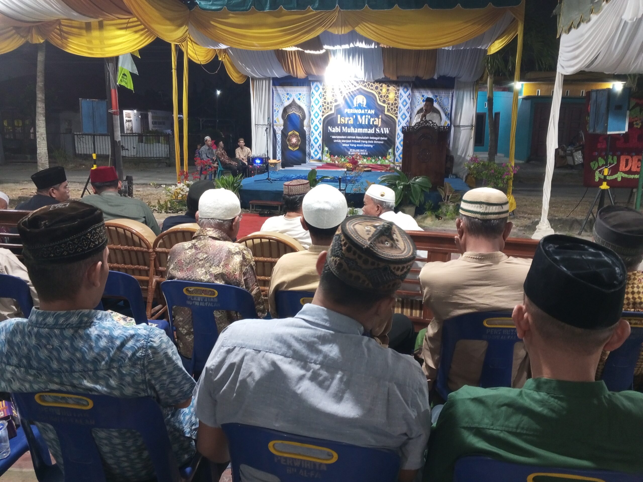 Kegiatan tersebut dihadiri oleh pengurus Badan Kemakmuran Masjid (BKM) Masjid Alfalah, Tokoh agama, Tokoh masyarakat, Perwiridan kaum Bapak dan Ibu – ibu, Remaja Mesjid Serta jamaah masjid yang tampak antusias mengikuti rangkaian acara peringatan Isra’ dan Mi’raj Nabi Muhammad SAW. Acara diawali dengan pembacaan ayat suci Al-Qur’an,dilanjutkan sambutan singkat dari Panitia Ustadz M.Dakwah Batubara Ketua pengurus BKM Mesjid Al Falah H. Muhammad Idris dan diakhiri dengan tausiyah inti.