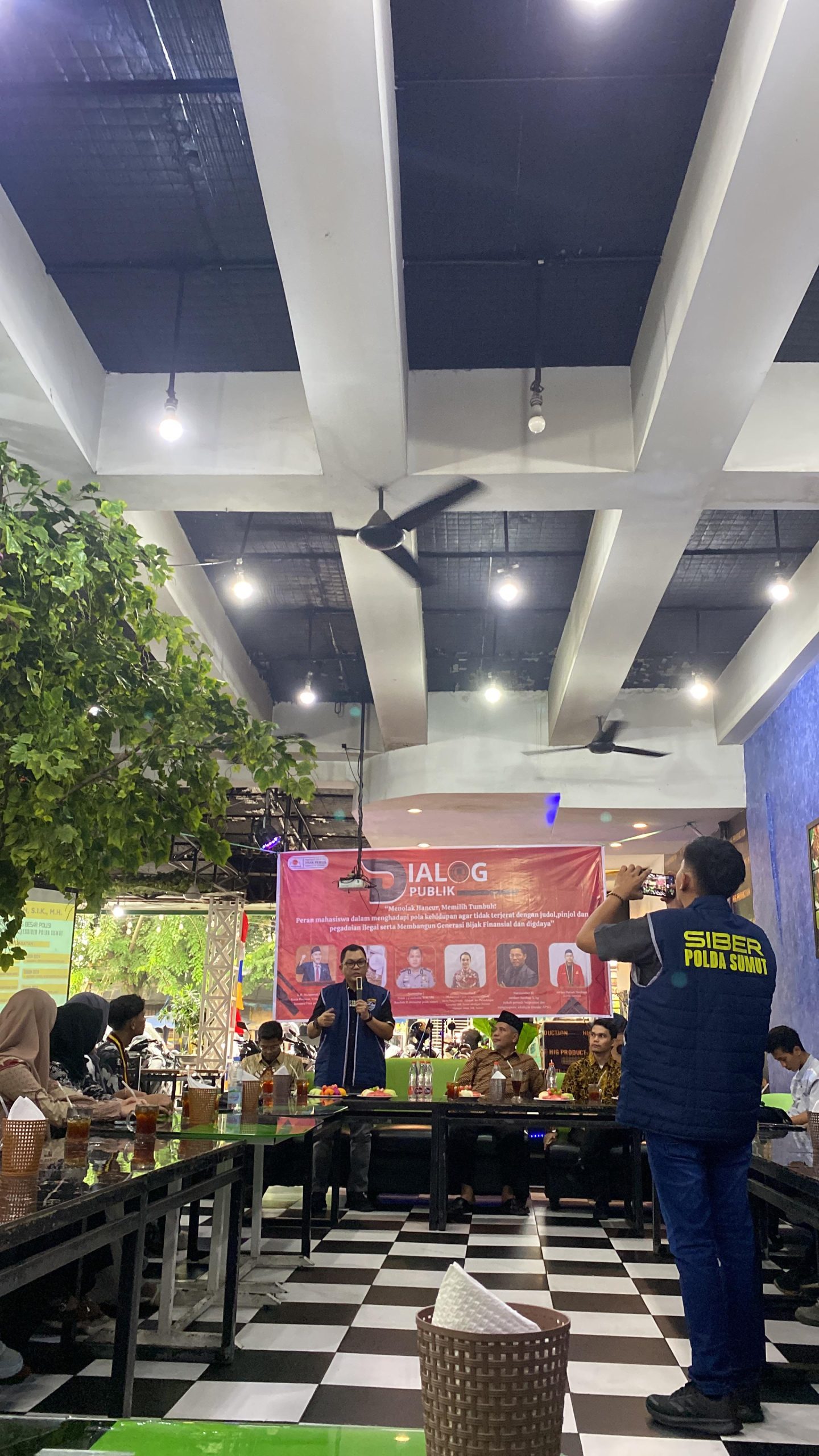 Tampil sebagai Narasumber Dialog Publik ini Kasubdit III Ditressiber Polda Sumut AKBP POLTAK Y.P.SIMBOLON, S.I.K.,M.H, M. Fajrin Saragih dari OJK Sumut dan Zamhuri Harahap Founder APSI.